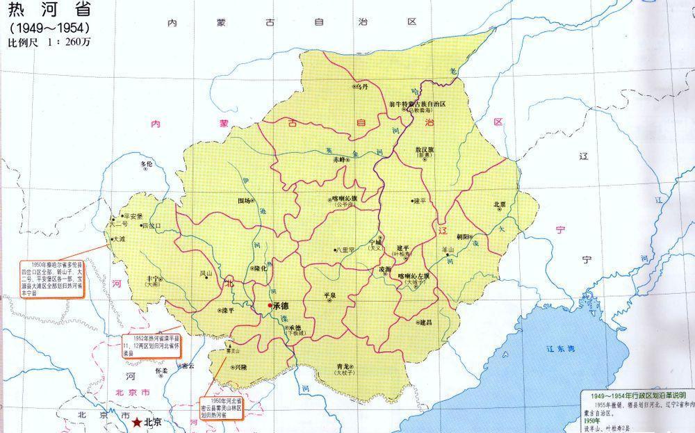 1955年,熱河省撤銷,以承德為核心的行省南部并入河北。
