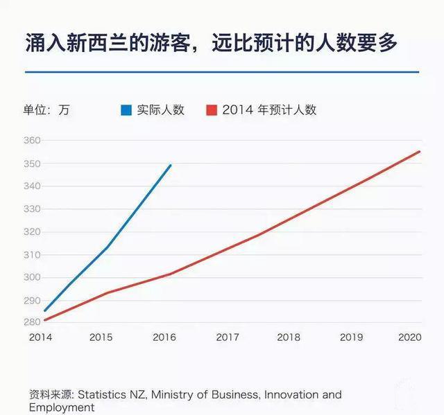 新西蘭也是旅游大國,據預測2022年,新西蘭將迎來450萬外來游客,幾乎與新西蘭470萬人口持平。