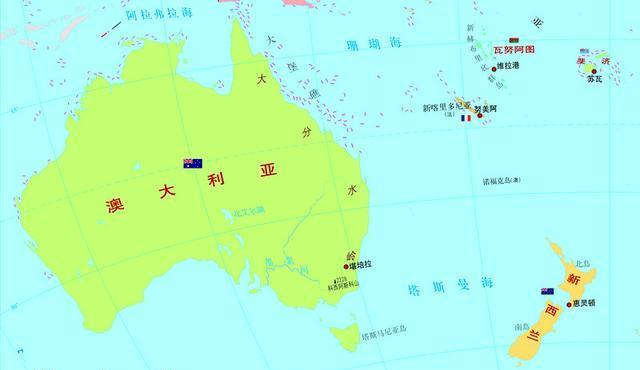 (新西蘭在大洋洲的位置。)