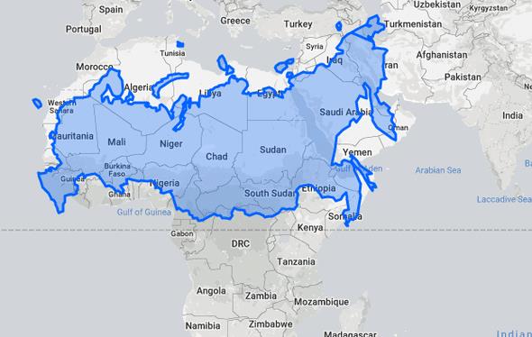 實際上俄羅斯的面積只有非洲約一半大小。