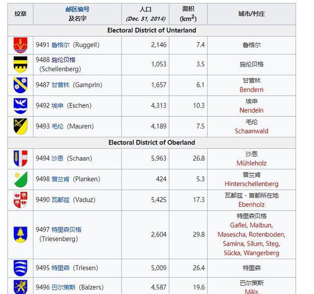 列支敦士登親王國(guó)的市鎮(zhèn)組與中國(guó)的鄉(xiāng)鎮(zhèn)名義上統(tǒng)計(jì),但是由于國(guó)家山區(qū)與平原分割比較明顯,因此這里面市鎮(zhèn)常常有飛地,內(nèi)部的人口分布其實(shí)也不算均衡。