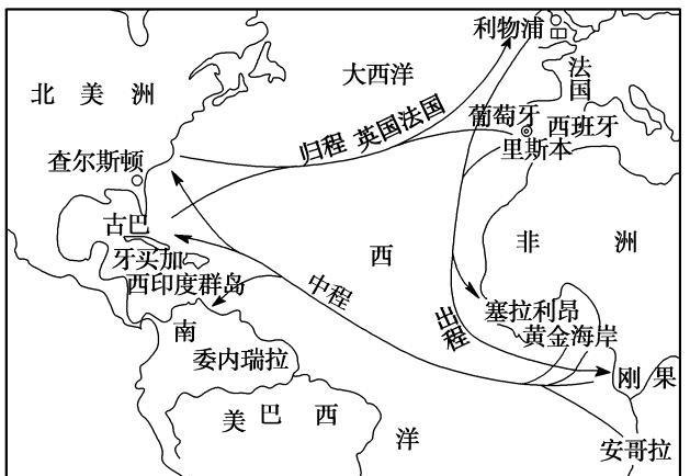(歷史上臭名昭彰的三角貿易路線。)