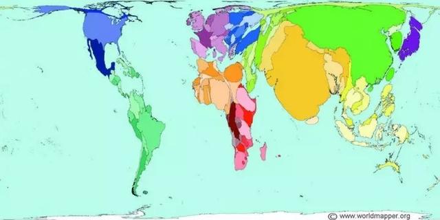 如果把人口數(shù)量換算成國家面積,世界地圖會變成這個樣子!