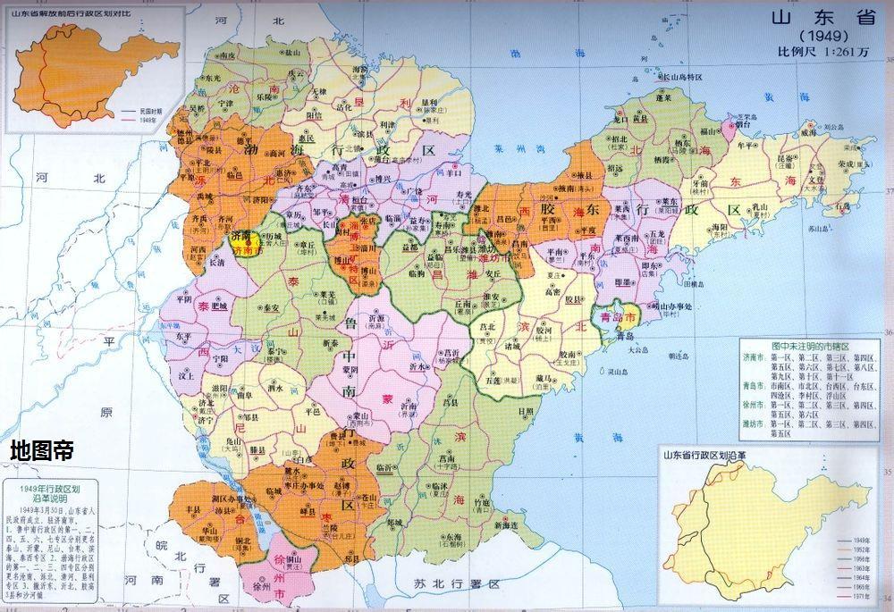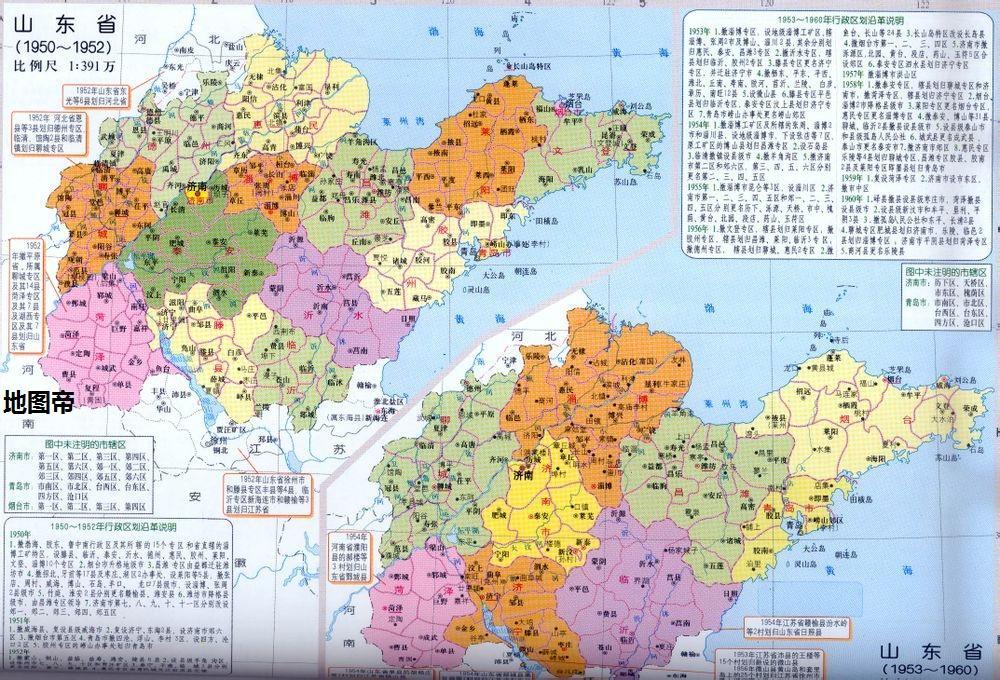 圖-1950-1960年山東省區劃沿革示意圖
