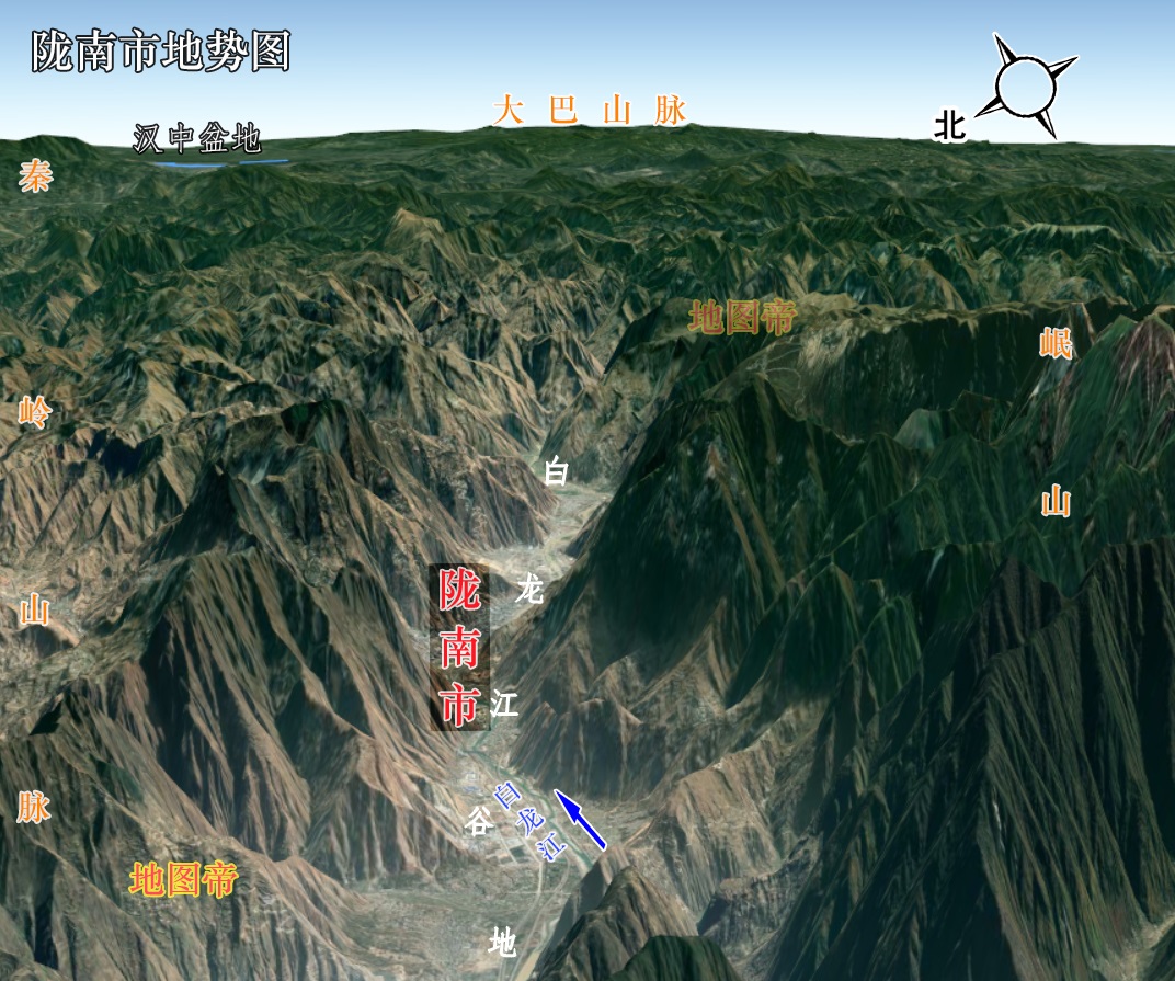 隴南位于甘肅省的東南部,南接四川省,東接陜西省,北接本省的天水,西接本省的定西和甘南州。隴南在甘肅省是非?!傲眍悺钡模褪且驗樽鳛橐粋€北方省份內的一個屬于南方的地方。甘肅省最重要的河流是哪條?當然是黃河了,可你是否相信甘肅省其實也是長江流域的省份?長江上游有一條重要的支流叫嘉陵江,嘉陵江有一條重要的支流叫白龍江,白龍江就穿隴南市南下,最終匯入萬里長江。