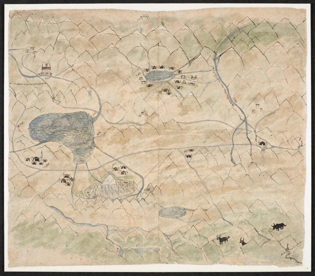 在倫敦的大英圖書館內收藏有這么一張珍貴的地圖,與其說是一張,其實是一套圖集,一套手繪的西藏彩色圖片地圖。
