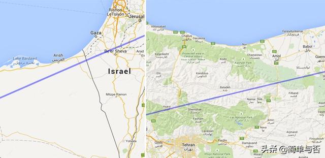 這條橫跨全球的最長的直線,在幾個點上,極度接近于失敗。比如說在以色列,這條路幾乎要撞上地中海,而在伊朗,你只會錯過里海。
