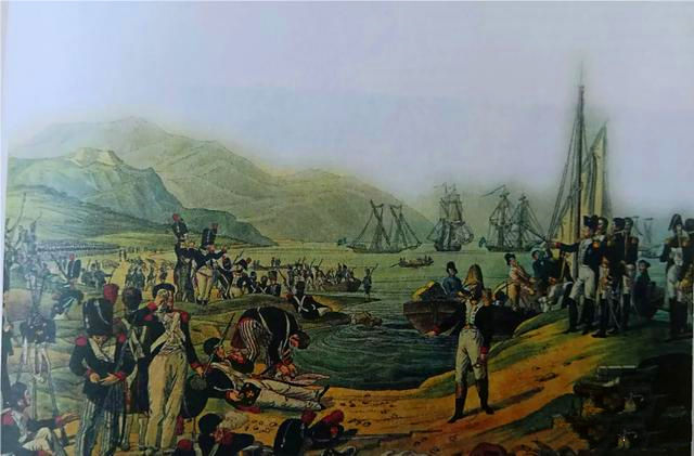 ▲:拿破侖于1815年2月自厄爾巴島逃出后,在法國儒昂港登陸的情景