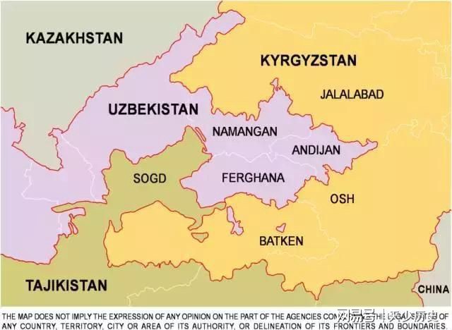 1710年烏茲別克人在費爾干納盆地建立浩罕汗國,曾是清朝的藩屬國,烏茲別克人成為費爾干納盆地的主要居民,因此現在大部分費爾干納盆地都屬于烏茲別克斯坦。19世紀,俄羅斯帝國征服中亞,將中亞三國大部分地區都納入俄羅斯的領土。1991年蘇聯解體后,中亞三國宣布獨立,在費爾干納盆地的領土以民族聚居區劃分,因此非常混亂。