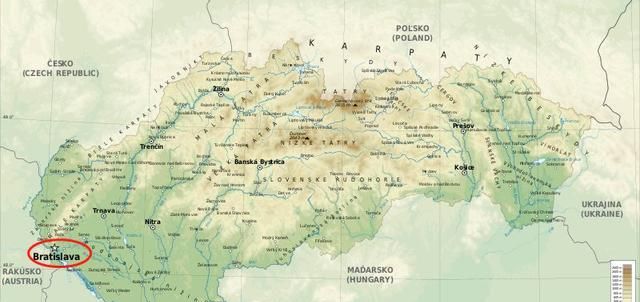 ▲斯洛伐克地形圖,其中西部和東南部為平原