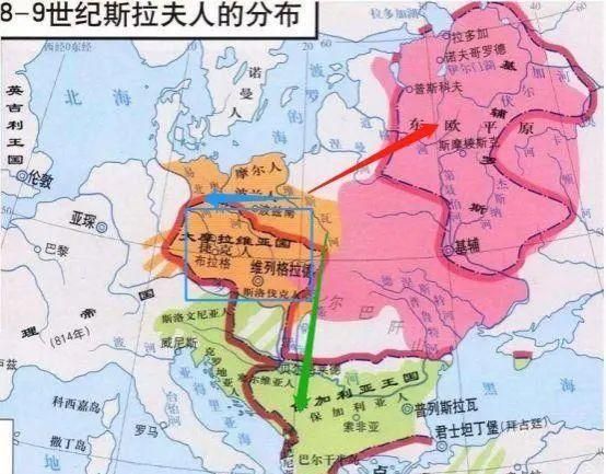 ▲大摩拉維亞公國,紅色為首都,在今捷克境內