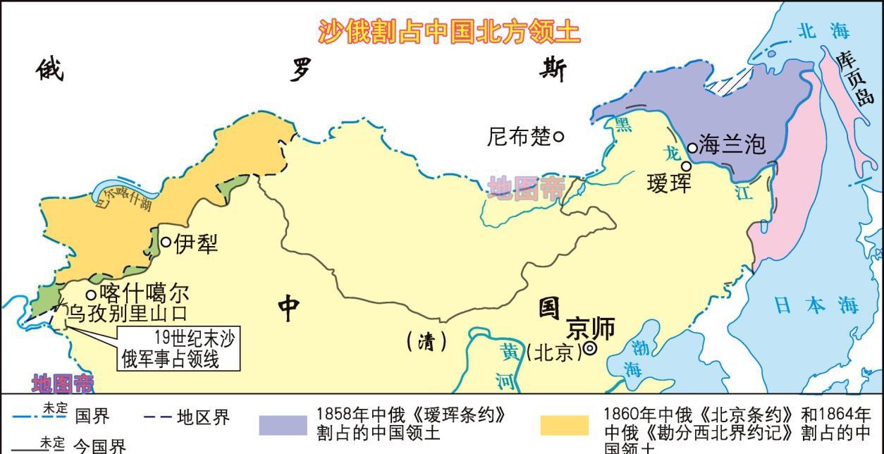 圖-清朝時(shí)沙俄割占我國北方領(lǐng)土示意圖