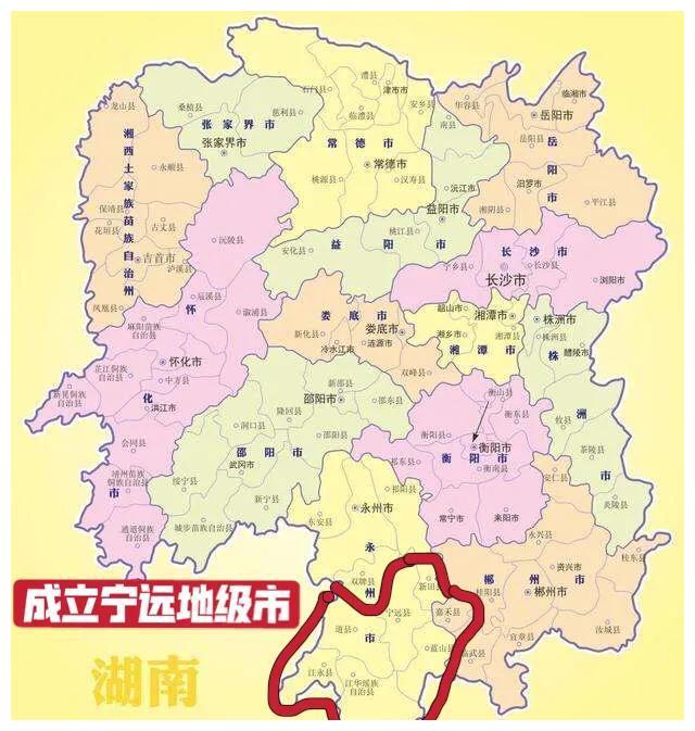湖南省湘南地區劃分永州市和郴州嘉禾縣共同成立寧遠地級市的設想