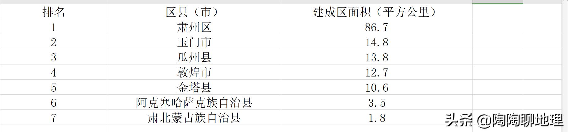 酒泉市各地建成區面積排名表