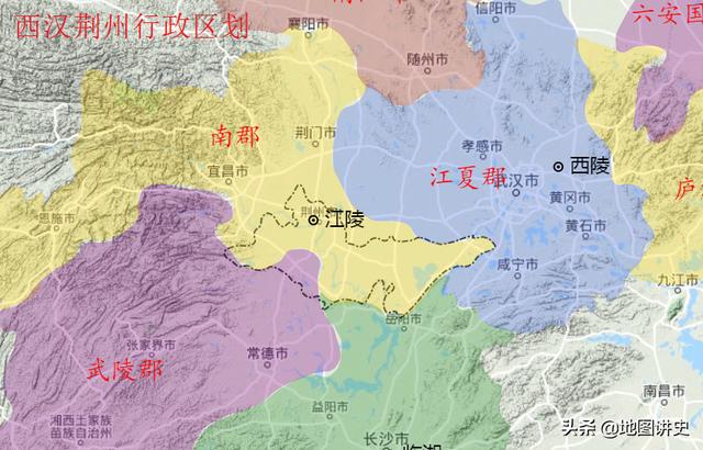西漢時的南郡區劃有所變更,西部多了恩施一帶,東部分了部分給江夏郡。