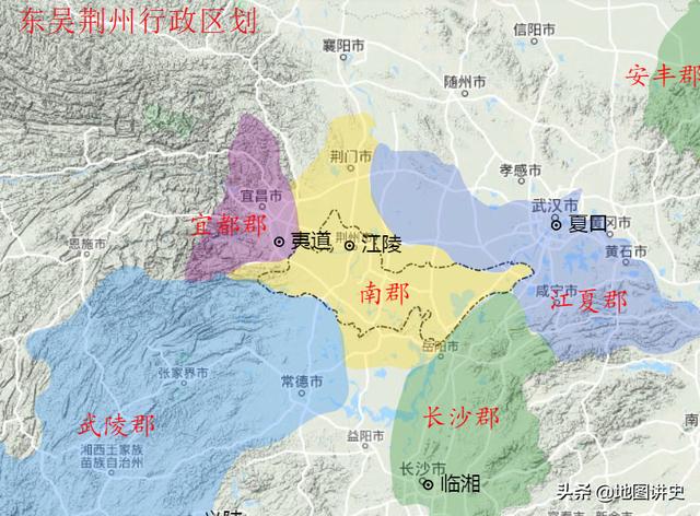 東吳時把南郡再進行分割,除荊州地區外,僅管轄如今的荊門、當陽、華容、安鄉、南縣一帶。