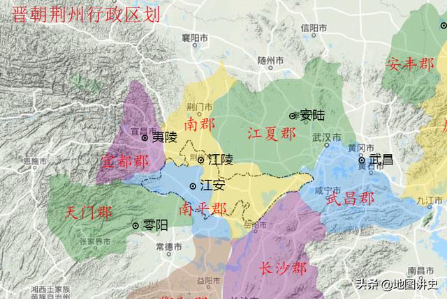 晉朝時再從南郡分出一個南平郡。南平郡治所在江安縣,在今天的公安縣西南一帶。