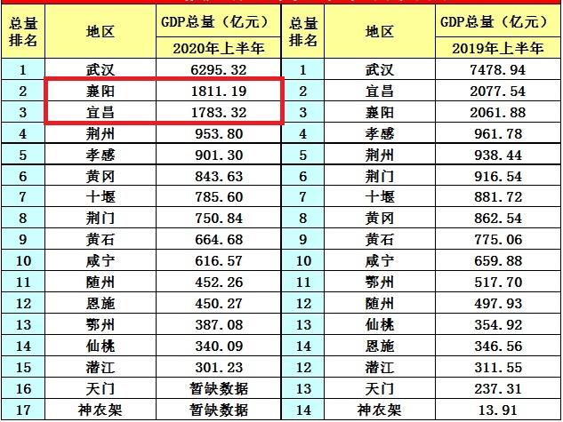2020年上半年,湖北省宜昌市、襄陽市的地區生產總值還算穩定,它們的情況也是表示了湖北省的西部并不弱。