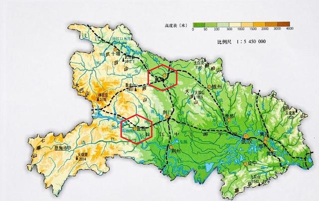 下面是湖北省的地形圖,襄陽市、宜昌市兩個地方位于全省的西部,距離省會比較遠,它們的強大對于湖北省的意義很大,避免了一城獨大的尷尬局面。