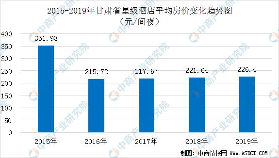 在平均房價上,2019年,甘肅省星級酒店平均房價為226.4元/間夜,平均房價低于全國平均水平(353元/間夜)。