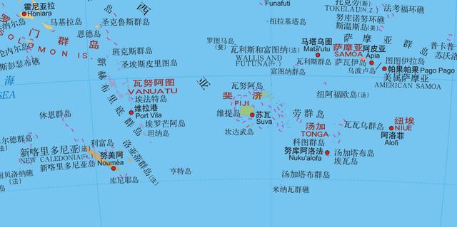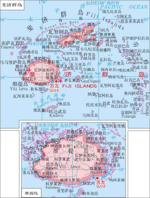 斐濟群島和瓦努阿圖周邊地圖