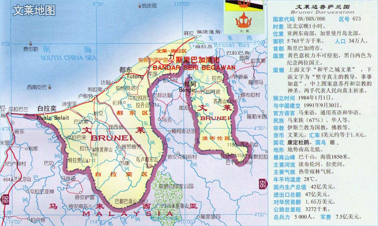 文萊是馬來(lái)半島上的一個(gè)小國(guó),四周都是馬來(lái)西亞的地盤(pán)。不過(guò)文萊雖然小,但是石油資源豐富,所以這個(gè)國(guó)家非常有錢(qián)。