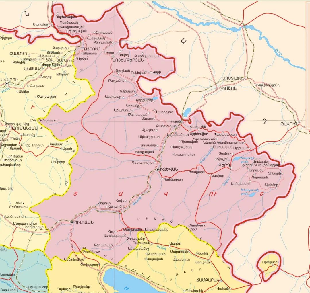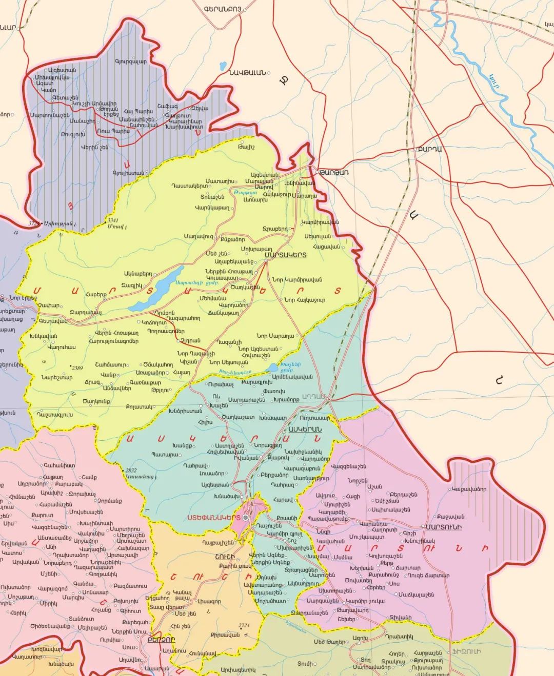 對于這個并不屬于亞美尼亞,卻又和亞美尼亞有著千絲萬縷聯系、近乎一體雙生的阿爾察赫共和國,亞美尼亞的地圖上究竟是怎樣標注的呢?