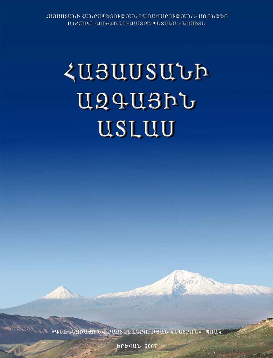 我在亞美尼亞房地產地籍委員會的網站上,發現了一本名為《亞美尼亞國家地圖集》的地圖冊,第一卷出版于2007年,主要是亞美尼亞和阿爾察赫的概況、自然人文地理、經濟以及分區地圖。