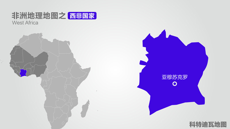 科特迪瓦共和國地處西非南部,與加納、利比里亞、幾內亞、馬里和布基納法索接壤,南部瀕臨幾內亞灣,國土面積約32.2萬平方公里,人口數量約2490萬,首都亞穆蘇克羅。科特迪瓦的意思是“象牙海岸”。
