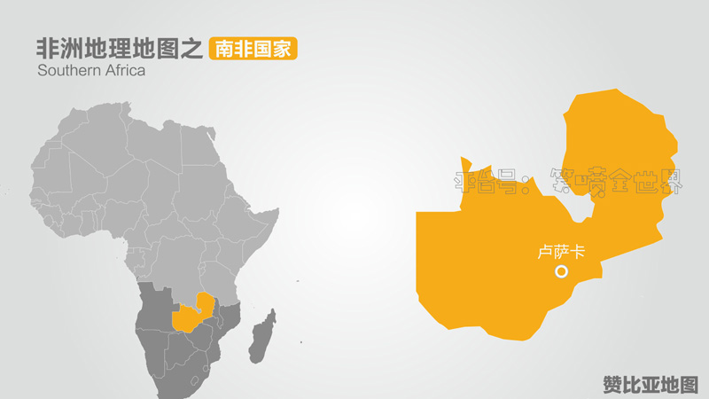 贊比亞位于非洲大陸中南部,西邊安哥拉,北面是剛果金,東邊馬拉維,南面和津巴布韋、莫桑比克接壤,是一個妥妥的被包圍的內陸國家,版圖被剛果金伸出一腳隔成兩段,首都是盧薩卡,國土面積約75.2萬平方公里,人口約1760萬。