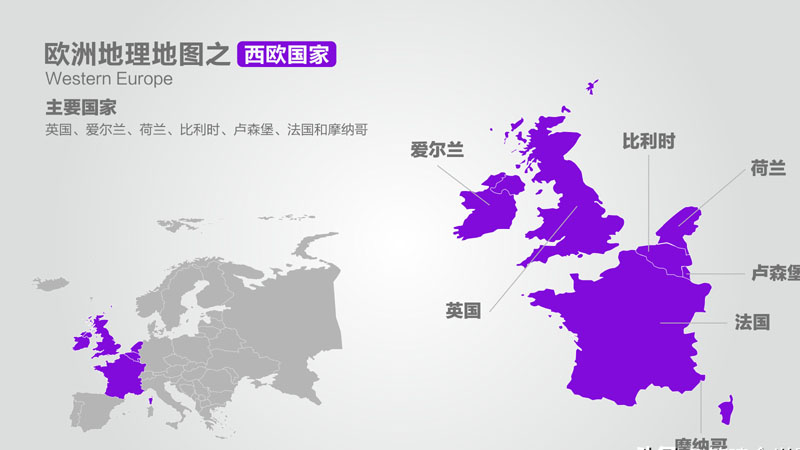 西歐地區一般是指愛爾蘭、英國、比利時、荷蘭、盧森堡、法國和摩納哥7個國家,這幾個國家的總面積不到100萬平方公里。