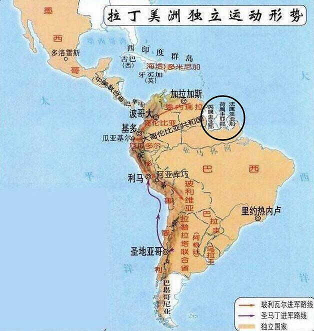 上圖_ 拉丁美洲獨立運動時期的 英屬、荷屬、法屬圭亞那