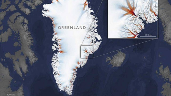 格陵蘭島幾乎每個(gè)區(qū)域的冰層都在融化