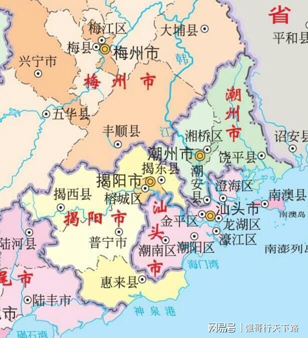 另外在珠三角以東的潮州、揭陽、惠州,這3個城市也是沿海城市,都在南海之濱。但這3座城市主城區都不在海邊,本文帶大家一起了解潮州、揭陽、惠州3個城市。