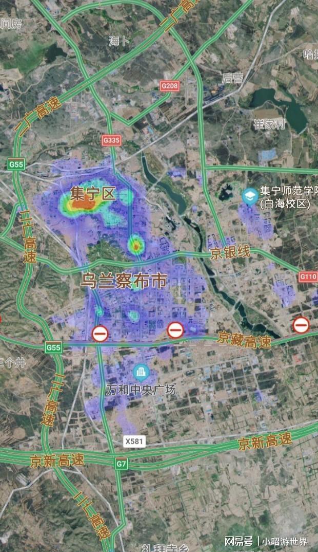 烏蘭察布這座城市看起來城區(qū)框架不小,只是熱力圖紅色區(qū)域小,藍(lán)色區(qū)域沒有完全覆蓋城區(qū),說明這個(gè)城市大,但是使用手機(jī)APP地圖軟件的并不太多。城市四周是地勢平坦的草原和平原,城市可以四面發(fā)展。