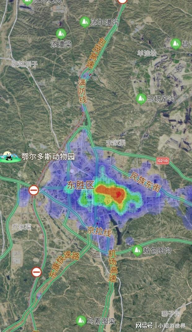 鄂爾多斯城區(qū)主要有兩部分,康巴什區(qū)和東勝區(qū),這兩個(gè)城區(qū)加起來面積還是挺大的,康巴什是新區(qū),規(guī)劃的非常不錯(cuò),但是人口比較少,東勝區(qū)人口更密集,從熱力圖也可以看出來,紅色區(qū)域在東勝區(qū),鄂爾多斯未來還是要往康巴什區(qū)發(fā)展,機(jī)場也在康巴什區(qū)南部。