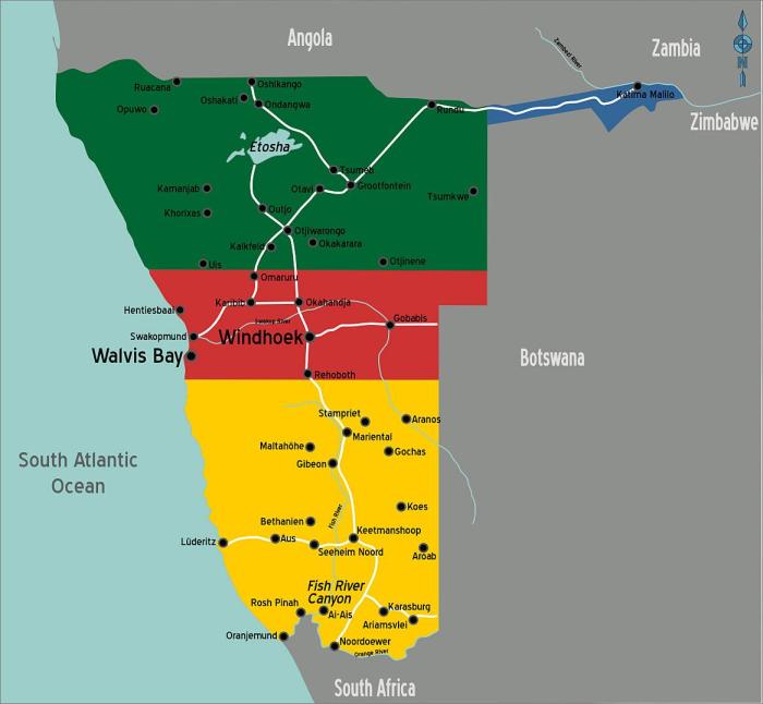 其實答案也很簡單,都是殖民時代的產物。歷史上非洲曾遭到多個歐洲殖民國家的瓜分,所以各國的邊界也必然和這些殖民大國有關。納米比亞這塊狹長的領土,便是兩個歐洲國家爭斗和妥協的產物。