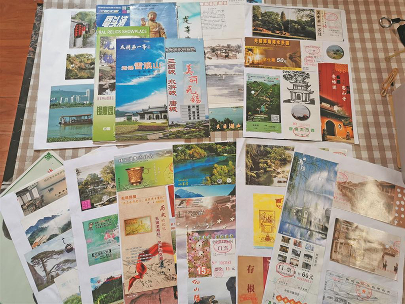 在新街家園小區內,記者見到了這些地圖和門票。地圖大多是無錫的,基本是2000年以后的,有2002年、2004年、2009年等年份的地圖,屬于交通旅游圖或旅游指南。地圖中有許多無錫景區的介紹,對于外界了解無錫是一個不錯的選擇。這些年無錫城市面貌日新月異,這些地圖在老盛看來,也是城市發展的見證。老盛家中還有一些門票,時間跨度從上世紀五十年代至今,都是他曾游玩過的地方,有陜西歷史博物館、天目山、烏鎮等景點的門票。不過門票中最多的還是無錫的景點,有黿頭渚、靈山大佛等景點門票,也有小眾的吼山門票,還有像太湖花卉園、無錫海角嬉水樂園等存在于市民記憶中的休閑游玩場所的門票。