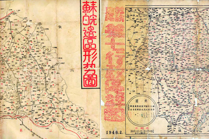 抗日戰(zhàn)爭(zhēng)勝利后,隨著革命形勢(shì)的發(fā)展,1945年10月,蘇中、蘇北、淮南、淮北四個(gè)抗日根據(jù)地合并為蘇皖邊區(qū)。11月1日,蘇皖邊區(qū)政府在清江市成立。12月,邊區(qū)政府決定將整個(gè)邊區(qū)劃分為八個(gè)行政區(qū),分別以第一至第八序號(hào)命名。皖北淮北津浦路東第七行政區(qū),是原淮北抗日根據(jù)地的主要區(qū)域。蘇皖邊區(qū)第七分區(qū)行政詳圖由淮北教育出版社于1946年2月制印。地圖標(biāo)注了城鎮(zhèn)和村莊,縣界、區(qū)界標(biāo)示分明,記錄了蘇皖邊區(qū)第七分區(qū)行政區(qū)劃全貌。1946年7月,邊區(qū)郵政局為做好工作,繪制了《蘇皖邊區(qū)形勢(shì)圖》。此圖顯示蘇皖邊區(qū)境域南濱長(zhǎng)江,北界隴海鐵路,東臨黃海,西至商丘、亳縣、蒙城、懷遠(yuǎn)一帶。這張地圖記錄了蘇皖邊區(qū)行政區(qū)劃全貌。這兩張地圖對(duì)于研究蘇皖地區(qū)革命斗爭(zhēng)史和區(qū)劃建置沿革具有很高的史料價(jià)值。(泗洪縣檔案館 供稿)