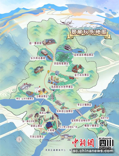 電子版手繪地圖 帶你“云游宜賓翠屏”