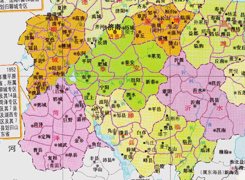 在山東省內(nèi),省會確立在濟南府,此外,還有好幾個府和直隸州,例如登州府、兗州府、萊州府、泰安州、曹州等等。17世紀中期,清朝逐步確立了自己的統(tǒng)治以后,根據(jù)自己的需要,再次調(diào)整了各地的區(qū)劃。最終,形成了內(nèi)陸18個省的結構。
