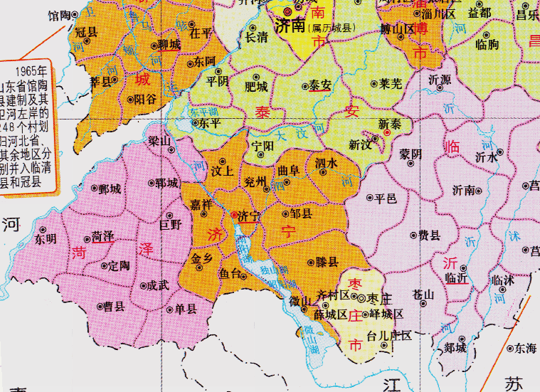 其實,這樣的區(qū)劃自己的問題。因為當時的交通、通訊條件有限,管理20多個縣的難度很大。例如召集各個縣開會,對于偏遠縣來說,可能提前兩天就得出發(fā)了。因此,到了1961年,菏澤專區(qū)重新設立。1964年,河南省與山東省之間,出現(xiàn)了一輪區(qū)劃調(diào)整。山東省的防線,劃入了河南省管理。河南省開封專區(qū)下轄的東明縣,劃入了山東省菏澤專區(qū)管理。