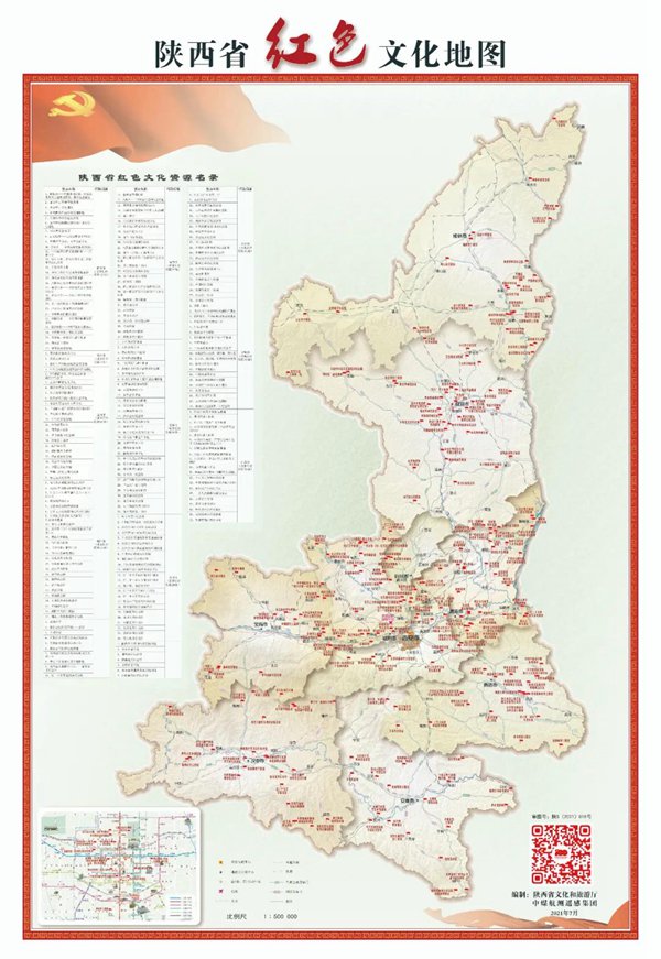 2021年是中國共產黨成立100周年,中煤航測遙感集團充分發揮專業優勢,通過“一張圖”系統全面展示了陜西省紅色文化資源,和陜西省文化旅游廳聯合編制了《陜西省紅色文化地圖》(2021版),幫助人們尋找紅色地標,發掘紅色資源、傳播紅色基因,充分展現三秦大地星羅棋布、璀璨奪目的鮮紅印記。