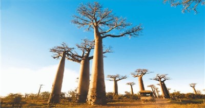 憑借多變色彩隱藏于林中的變色龍,馬達加斯加最大的食肉動物馬島獴,世界上最稀有的陸龜阿加諾卡龜……馬達加斯加不愧為野生動物的天堂。不僅如此,這片土地上還生長著令人大開眼界的奇花異樹。最典型的就是被當地人視作“圣樹”、有“荒原水塔”美名的猴面包樹。猴面包樹學名叫波巴布樹,又名猢猻木。在干旱少雨的馬達加斯加熱帶草原,猴面包樹憑借獨特的枝干結構頑強生存,見證地球歲月,閱盡人間滄桑。它樹皮光滑、木質疏松、表硬里軟,利于儲水。到了旱季,草原上的野獸會啃咬猴面包樹解渴,長途跋涉的旅人也能從樹上挖洞取水。在一些猴面包樹下,至今存有一些古代人類活動的遺跡。如今,當地居民還不時聚在猴面包樹周圍舉辦傳統儀式。