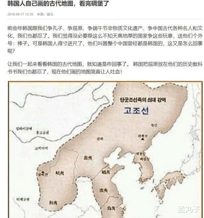 在網上還流傳過一個版本,是韓國人畫的中國地圖,在地圖上,中國面積肉眼可見的縮小,而朝鮮半島的面積又極其寬廣,因此中國人民笑稱:韓國在長江北,越南在長江南,中國在長江里遨游了五千年。