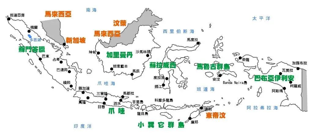 比如蘇門答臘西部與爪哇,即便能通過公路、鐵路相連接,但由于距離過長,不能形成像巴黎、莫斯科那樣的交通樞紐,交流的的頻次和有效性受到嚴重制約。