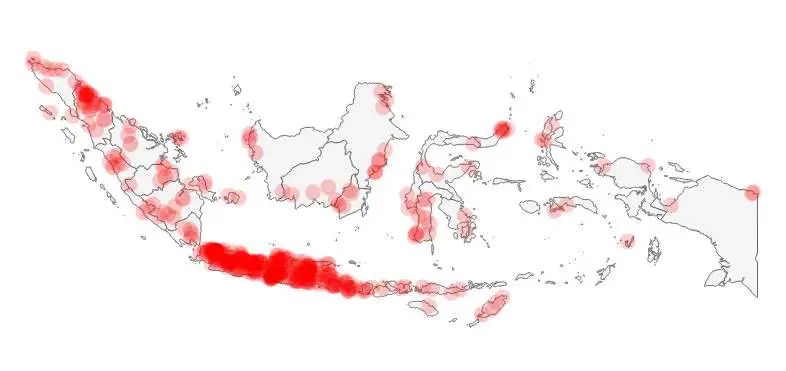 (印尼人口分布;人口主要聚集在爪哇島。)