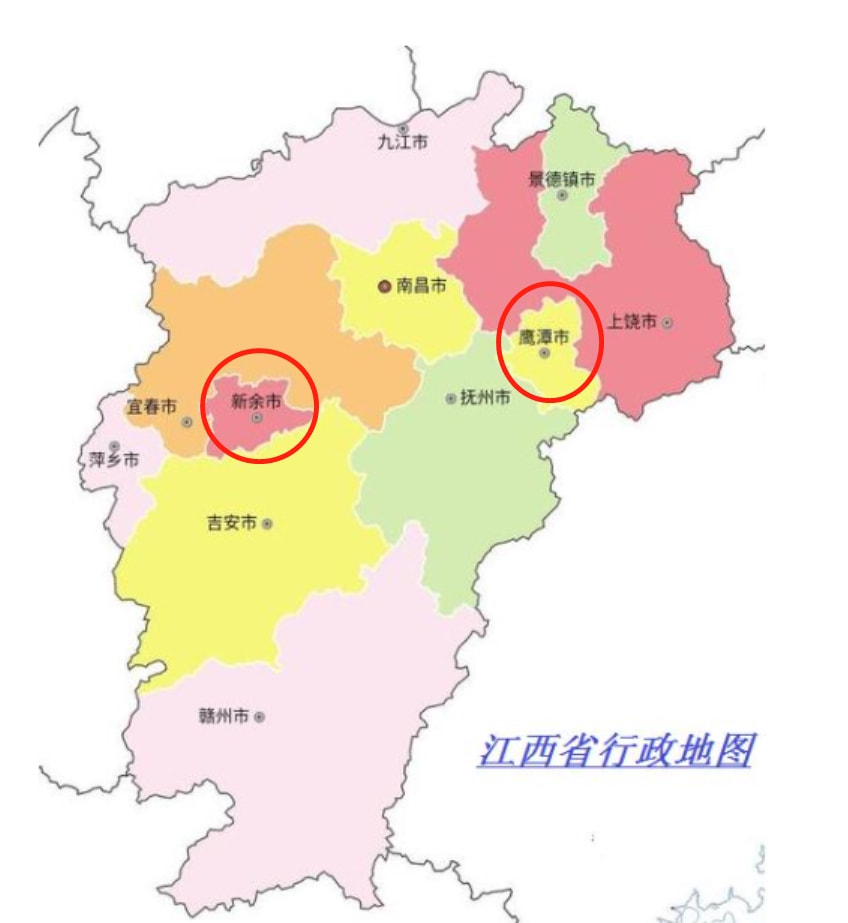 從上面地圖中可以看出,鷹潭市、新余市是兩個規模比較小的地級市,它們都在江西省的北部,小而美是二者共同的特點。