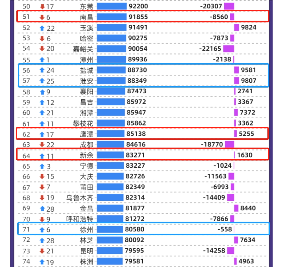 鷹潭市、新余市排名全國60多,它們顯然已經是江西省人均經濟亮點,即便在強大的江蘇省,二者也能排在中游水平。