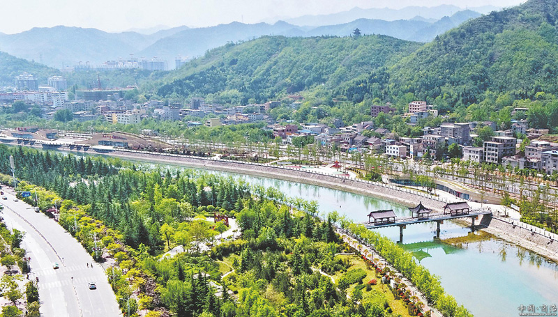 丹江呈弧形穿商洛城區,南有龜山,北有金鳳山,形成了一江碧水、兩岸青山的格局。近年來,商洛市以丹江為軸,以建設生態綠色休閑長廊為重點,順丹江北岸建有丹江公園、江濱大道,丹江南岸建成了商鞅大道和銀杏公園,形成了丹水為裙、長堤為帶、三季有花、四季常青的城區新景,城市品位得到顯著提升,已成為市民和游客觀光游覽、健身休閑的打卡必選地。